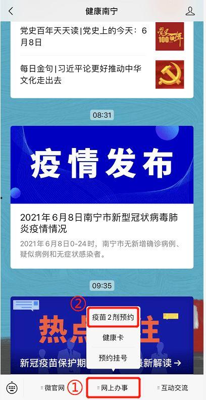 1. 关注“南宁疾控”微信公众号,在线预约;